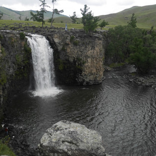 Après le déjeuner, nous partons avec les chevaux pour découvrir la chute d'eau Ulaantsutgalan. Cette cascade d'environ 20 m de hauteur est apparue il y a 20 000 ans suite aux divers séismes et éruptions volcaniques répétés. Petite balade pour découvrir le lieu et retour à cheval. En tout, 5h de cheval pour 25km et aller voir la cascade, un bel après-midi.