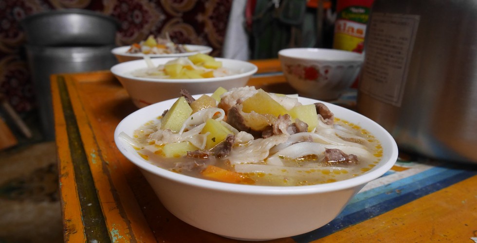 Ce soir-là, nous avons aussi participé à la cuisine, nous avons confectionné des dumplings fries, et nous avons joué à des jeux en extérieur avec les enfants qui avaient entre 9 et 18 ans. Nous leur avons appris des jeux au ballon et eux aussi nous en ont appris, un vrai moment de partage et d'émotions, voir leur capacité à s'adapter et les voir heureux avec simplement un ballon, un jeu et d'autres personnes avec qui jouer. Nous avons mangé dans la yourte principale tous ensemble et avons bien rigolé. Ils nous ont sorti leur vodka locale et nous avons pu la goûter. La guide nous a expliqué que c'est aussi très rare qu'ils sortent la vodka aux invités, seulement lorsqu'ils ont un grand respect pour eux, donc forcément cela nous a touché. Même si nous ne buvons habituellement pas d'alcool, nous avons goûté cette vodka faite à base de lait fermenté.