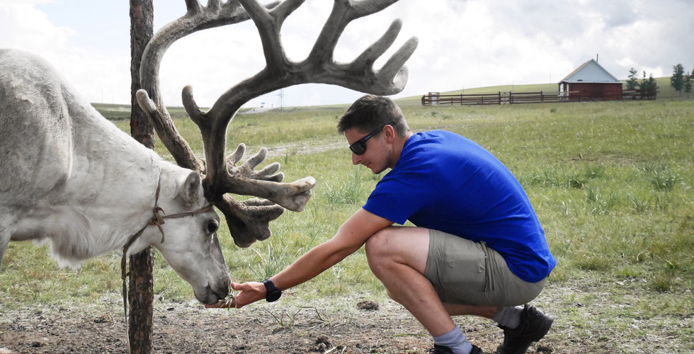 Nous partons le matin en direction du Lac Khuvsgul, mais j'oublie ma serviette et mon gant à l'autre camp donc nous faisons demi tour au bout de 30min de route. La piste que nous empruntons pour le lac Khuvsgul, serpente entre les hautes montagnes forestières de la Taïga. Certains passages de cols peuvent atteindre 3 000m d'altitude. Nous nous arrêtons sur le site historique du pays : les pierres à cerf d'Uushigt, à l'ouest de Möron, datant de l'empire des Huns. Une pierre à cerf est un mégalithe datant du début du Ier millénaire avant Jésus-Christ jusqu'à la fin du IIème après JC. Son appellation provient des gravures de cerfs représentés en train de voler. Environ 700 statues dans ce genre ont été découvertes en Asie centrale dont 550 sur le territoire mongol. Nous atteignons les rives méridionales du lac Khuvsgul dans l'après-midi du deuxième jour. Sur les côtés de la route, nous pouvons voir des cerfs, donc nous nous arrêtons pour en profiter et les approcher. Nous nous installons chez l'habitant dans notre Yourte et décidons de partir découvrir le lac au couché du soleil pour voir les lumières se refléter et les magnifiques paysages. Ce lac fut un véritable coup de cœur de ce voyage.